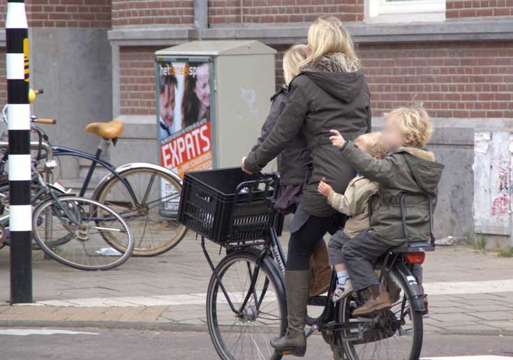 Bom, sendo que os holandeses se transportam basicamente de bike, como fazer com as crianças? Levar na garupa eles até levam, e tem cadeirinhas pra isso, e ate alguns modelos de bicicleta especiais, chamados de Mamafiets (“bicicleta da mamãe”).