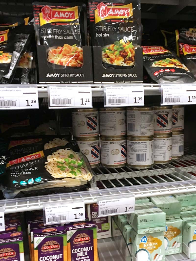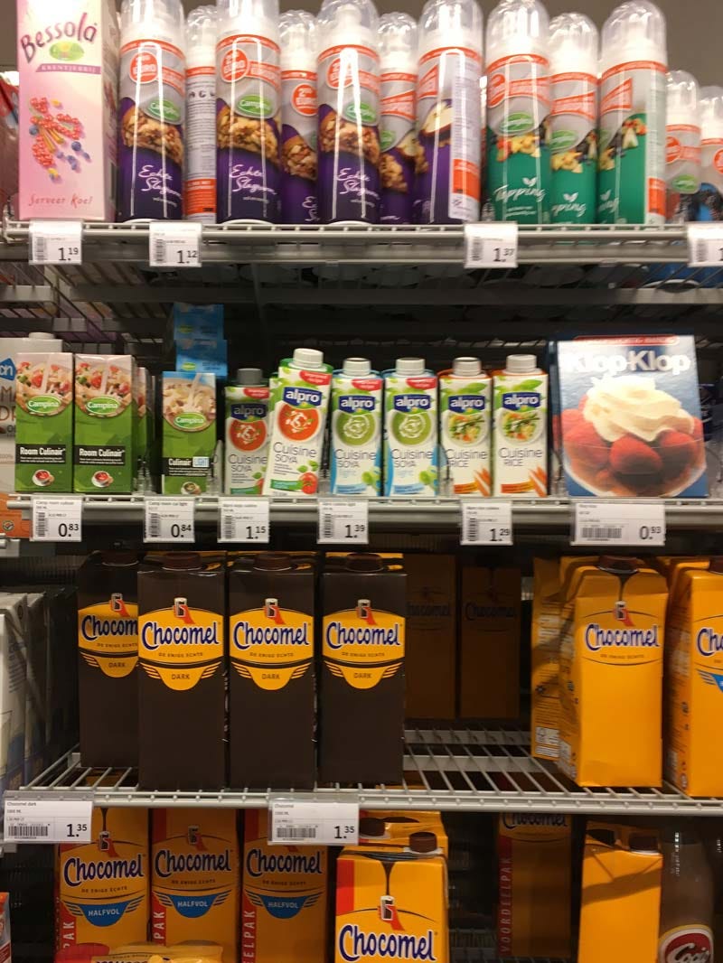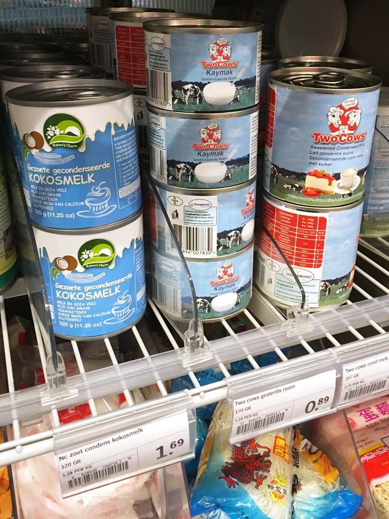 Mas isso não significa que não tem leite condensado aqui. Tem sim. E tem leite condensado de marcas diferentes e marcas holandesas, mas tem que saber em que seção do supermercado ele está (explico mais abaixo).