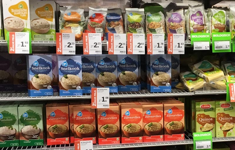 Outro aspecto em que a diferença cultural dificulta achar o produto que a gente quer no supermercado da Holanda: o tipo de embalagem pode ser diferente. No Brasil é em saquinhos, aqui em caixinhas, por exemplo. E você fica caçando saquinho plástico sem enxergar o produto em caixinha bem na sua frente.